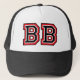 sombrero de camionero "BB" con letras rojas y negras