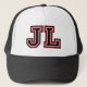 Etiquetas clásicas rojas y negras "JL" monograma sombrero