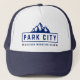 El diseño de las montañas de Park City con la bandera estadounidense.