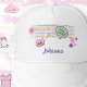 Esta divertida gorra de camionero pastel incluye un gato personalizado rosa con una varita estrella, coloridas franjas de arcoiris onduladas, una burbuja de habla que dice "Vida Girona" y tu nombre en libreto. Personalizar de texto, colores y tipos de letra para hacerlo único suyo! Explorar los elementos coincidentes de la colección completa para completar el tema. ¡Echa un vistazo a los engranajes más coloridos de mi tienda Sunny Wanderlust en Zazzle! ©Susanne Sachers - Sunny Wanderlust 🌞 ✈️