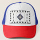 Este capuchón presenta un diseño geométrico abstracto moderno con un diseño recurrente de líneas y rombo. El azul oscuro y el blanco crujiente de la medianoche se muestran de forma destacada en el frente, mientras que el rojo brim y la espalda le dan un aire audaz y patriótico. Es un accesorio elegante, perfecto para añadir un toque de estilo único y un toque de color a cualquier aspecto casual.