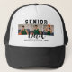 Help Dad show off his pride with this custom "Senior Dad" trucker hat. The design features a modern typographic layout with "SENIOR" in bold block letters and "Dad" in a stylish script, overlaying a collage of three custom photos.