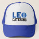El nombre Leo con la letra O como plato con cuchillo y tenedor. el texto "catering" puede ser cambiado y todos los colores pueden ser cambiados.