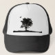 Gorra estupendo del camionero del rad para él o para ella. Silueta de un roble del bebé con un vuelo del cuervo en la distancia.