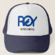 El nombre Roy con un pájaro sentado dentro de la letra O. El color del texto y del pájaro pueden cambiarse y el texto de abajo "Nerd de pájaro" puede cambiarse o eliminarse.