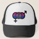 El símbolo de Marte que representa al varón; el símbolo de Venus representa a la hembra. El círculo central representa la atracción a ambos géneros.