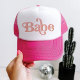 Esta gorra de camionero para despedida de soltera con tema retro de los 70's presenta una fuente con temática retro de los 70's en un color naranja cremoso. Pide la opción de novia blanca para la futura novia y las gorras naranjas 'babe' coordinadas para tu grupo de despedida de soltera. ¡Los colores son editables! Haz clic en 'editar diseño' para crear tus propios colores.