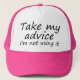 Tome mi consejo, yo no lo están utilizando. Un trazador de líneas sarcástico seguro para hacer que sonríen. Gorra negro, rosado y blanco.