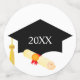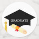 Gorra de graduación y estrellas en confetti blanco
