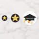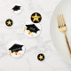 Elegante gorra de graduación y brillantes estrellas en la Mesa Confetti en blanco y negro. Texto listo para ser personalizado. ¡Ideal para graduaciones! ¡Brilla como una estrella!