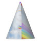 Siguiendo con el tema "Chica afroamericano". Un arco iris en espiral que pasa por las nubes en el cielo se muestra en el fondo con la palabra "Feliz cumpleaños" encima. Un diseño bonito para una fiesta de cumpleaños de chicas.