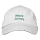 Las palabras "El viaje de la naturaleza" bordadas en un gorra