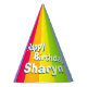 El brillante patrón rayado del arcoiris agrega su propio nombre de gorra fiesta. Ideal para una colorida fiesta de cumpleaños con el arcoiris. Diseño rojo colorido, naranja, amarillo, verde, azul, violeta. Diseñado por www.mylittleeden.com