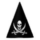 El gorra del fiesta se muestra en negro con un cráneo pirata y una huella de cuchilla. Personalizar este artículo o compra tal cual.