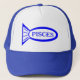 Este impresionante gorra presenta un contorno de un pez azul con detalles en su interior. También hay un texto que dice Pisces dentro del contorno del pez. Este diseño es ideal para personas con cumpleaños entre el 19 de febrero y el 20 de marzo.