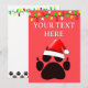 Gato de dibujos animados con huella negra. Edite el texto para personalizar. Espacio en blanco en la parte trasera para mensajes escritos a mano.