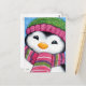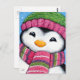 Postal de invierno con reproducción de una pintura acrílica original de Lisa Marie Robinson. "Pingüino festivo" — Un pingüino lindo con un gorra de lana verde y rosa y una bufanda a rayas. Derechos reservados © Lisa Marie Robinson. Todos Los Derechos Reservados. Es ilegal usar o duplicar esto, o cualquiera de nuestras imágenes, sin permiso escrito.