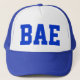 Gorra del camionero del azul real y del blanco con BAE impreso en letras azules.
