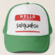 Únase a la caza para el pie grande con este gorra de la diversión. Tiene una insignia conocida del fingimiento que diga "hola, mi nombre es Sasquatch."