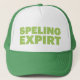 Diversión y lema irónico en el gorra del camionero, verde, declaración tipográfica divertida de SPELING EXPIRT, inspirada por rossitano de la carta franca del carácter de la comedia de la TV.