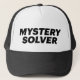 Diversión y lema irónico en el gorra del camionero, negro, declaración tipográfica divertida del DISOLVENTE del MISTERIO, inspirada por rossitano de la carta franca del carácter de la comedia de la TV. detective verdadero.