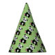El gorra del fiesta se muestra en un color de verde lima con una impresión linda de la panda.
