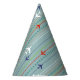 Abróchense el cinturón de seguridad. Este Gorra del Fiesta del patrón del avión retro está listo para el despegue. El diseño presenta líneas de aviones rojos, azules reales y blancos modernos de mediados de siglo que sobrevuelan un fondo azul de acero. Delgadas rayas de naranja, verde limón y gris, así como líneas de puntos verde azulados, añaden interés a esta caprichosa pieza de Americana. No te dejes atrás. ¡Elige la tuya. ¡Listo! ¡Jet set! ¡Vamos!