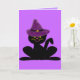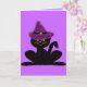 El gato feliz intentó encendido el gorra de la bruja púrpura, y ella está lista por una noche del truco o de tratar.