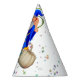 A los niños les encantará el Gorra Fiesta del Asistente Azul con calabazas en un fondo de estrellas brillantes. Ideal para los cumpleaños, los temas fiestas de los niños de bruja y magia. Úsalo para festivales de otoño, fiestas de Acción de Gracias para la familia y los niños.
