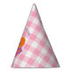 Personalice a estos lindos gorras fiestas de papel fiesta con su foto y letra. El fondo del cheque en búfalo blanco y rosa con flores de estilo retro rosa, violeta y naranja será un éxito con su pequeño.