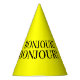 Francés para un buen día/hola, en letras negras sobre un fondo amarillo sólido.
