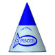 Este impresionante gorra fiesta presenta un contorno de un pez azul con detalles en el interior. También hay un texto que dice Pisces dentro del contorno del pez. Este diseño es ideal para personas con cumpleaños entre el 19 de febrero y el 20 de marzo.