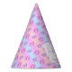El diseño tiene un unicornio volador con una cola y una forma rosada y púrpura, ojos cerrados y alas estiradas. El unicornio está rodeado de elementos en forma de corazón que se alternan entre los tonos rosa y violeta. Un patrón impecable con un fondo pastel de ensueño que cambia los tonos rosa, violeta y azul. Hay pequeñas estrellas blancas y pequeñas formas cardíacas repartidas por todas partes. La estética general es caprichosa y mágica, evocando una atmósfera suave y de fantasía.