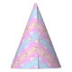 Este patrón impecable presenta un tema mágico y onírico con unicornios, castillos y elementos celestes, colocados sobre un fondo de degradado pastel de rosa, morado y azul. Los unicornios tienen manes rosados, cuernos dorados y elegantes alas, y parecen estar descansando en nubes esponjosas. Los castillos, pintados en un estilo de silueta caprichosa, añaden un encanto de cuento de hadas. Alrededor de la escena hay estrellas dispersas, corazones, coronas, diamantes y estrellas fugaces, lo que realza la estética de fantasía. El diseño tiene un aire suave y etéreo.