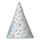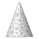 El diseño muestra un patrón impecable de majestuosas cabezas de unicornio con formas de colores pastel, en tonos rosas, azules y amarillos, adornadas con chispas. Los unicornios tienen ojos expresivos y cuernos dorados, dándoles un aspecto mágico y elegante. Las flores delicadas que las rodean son de tonos rosas, violetas y azules, acompañadas de ramas verdes y frondosas. El fondo blanco realza la estética vibrante y caprichosa del patrón, haciéndolo soñador y encantador.
