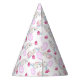 El diseño se caracteriza por un patrón repitido de majestuosas cabezas de unicornio con manes de colores pastel en tonos rosa, azul y amarillo. Los unicornios tienen ojos expresivos y cuernos dorados, lo que añade su encanto mágico. Alrededor de ellos hay suaves nubes rosadas y giratorias y pares de brillantes corazones rosados, todo ello sobre un fondo blanco. La combinación crea un sueño.