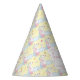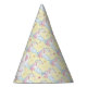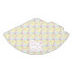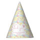 El diseño tiene un fondo amarillo pálido con elegantes cabezas de unicornio blanco con formas de flujo rosa, azul y amarillo pastel. Entre los elementos que lo rodean se encuentran las nubes onduladas con un contorno azul, las lunas de media luna y las estrellas dispersas en amarillo y rosa. Los unicornios tienen cuernos dorados y ojos expresivos, añadiendo un toque mágico. El patrón impecable crea una estética inspirada en el sueño y la fantasía.