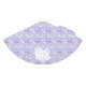 El diseño tiene un fondo de lavanda con cabezas blancas de unicornio que tienen formas de flujo rosa, azul y amarillo pastel. Diseminadas por todas partes están las nubes onduladas de un perfil azul, los corazones rosados y las estrellas amarillas. Los elementos están dispuestos en un patrón impecable y caprichoso. El estilo general es de ensueño y de fantasía.
