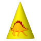 El gorra fiesta se muestra en amarillo con una tira de dinosauer tierno. Personalizar este artículo o compra tal cual.