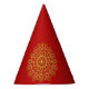 Elegante gorra fiesta rojo y dorado. Ideal para celebraciones especiales. Fondo rojo con un adorno de inspiración árabe dorado de estilo moderno. Resumen, ilustracion, elegante, geométrico, moderno, étnico, barroco, lujoso, árabe, morisco, motivo.