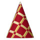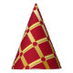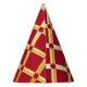 Elegante gorra fiesta rojo y dorado. Ideal para celebraciones especiales. Fondo rojo con un diseño de inspiración árabe dorada de estilo moderno. Resumen, ilustracion, elegante, geométrico, moderno, étnico, barroco, lujoso, árabe, morisco, motivo.
