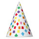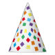 Gorra fiesta de confeti arcoiris con una alegre impresión de formas cuadradas de colores vivos y de confeti de diamantes. Perfecto gorra de conos de papel festivo para una fiesta de cumpleaños de un chica o un niño. Un gorra alegre y alegre con motivos de bonito para traer alegría a su evento.