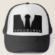 © Sunny Mars Designs - Pinstripe Suit: Sombreros de camioneros negros y grises - fiestas de boda a la medida de los camareros de soltera, gorra o gorro de camarero con un traje de soltero negro y gris, camisa blanca y corbata negra.   Perfecto regalo para tu mejor hombre, padrino, lucioperca, portador de anillo o cualquier hombre en tu fiesta.