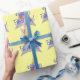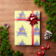 La pintura de globos coloridos sobre gorras fiestas de plata está enlosada en papel envolvente. El texto dice, Feliz Cumpleaños, y se puede personalizar fácilmente para otro tipo de celebración.