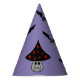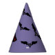 Un hongo vampiro personalizado lindo, con una gorra negra, manchas rojas y pequeños colmillos de hongos. Están rodeadas de batallas de vampiro sobre un fondo morado.