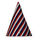 CUERO PARECE PATRIÓTICO-GORRAS FIESTAS-franjas verticales rojas, blancas y azules creadas con textura de cuero digital. Las rayas son una impresión de fondo de largo alcance que se adapta a las vacaciones y eventos especiales durante todo el año. Los gorras de papel tienen seis (6) pulgadas de alto. Se requiere un mínimo de una docena. Se dispone de suministros de fiesta de coordinación.