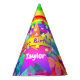 Luminosos y hermosos, psicodélicos gorras del fiesta Feliz Cumpleaños para los niños, diseñado por HAMbyWhiteGlove. Cada color del arcoiris parece representado aquí con rojo, verde púrpura, azul, naranja, agua, amarillo y más! 203-302-0337 para consultar la colección correspondiente