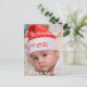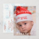 Diseño único de tarjeta de Navidad con un bebé con gorro de Santa, dentro de copos de nieve desvanecidos sobre blanco. Utilice la herramienta Personalizar para agregar la foto de su bebé/familia, su información, cambiar el color de fondo, texto, fuentes. Vea, también, mi Colección de Cumpleaños Divertidos.