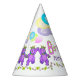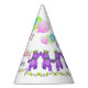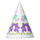 Top de la 1ra fiesta del cumpleaños de su chica con estos gorras del fiesta de la diversión que ofrecen el oso de peluche púrpura lindo de la princesa con una corona de oro, globos del fiesta, rosa delicado que un amarillo florece y el nombre de la chica marchosa. Personalice el nombre en la plantilla proporcionada.