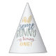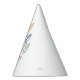 Un gorra de papel de cumpleaños "un conejito" lindo y colorido. Tipografía pastel con acento de oído conejito.